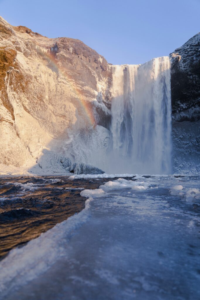 Famous for its black volcanic sand, basalt columns, and powerful waves. It feels both eerie and beautiful, especially with the sea stacks rising offshore.Skógafoss
